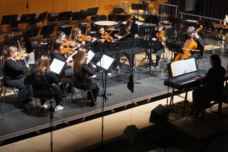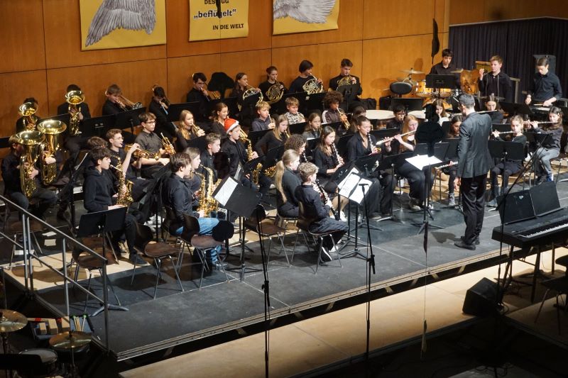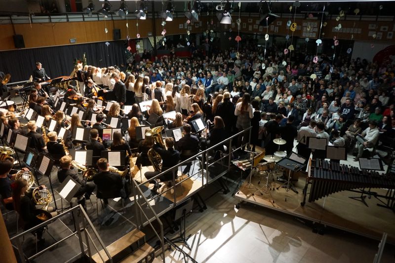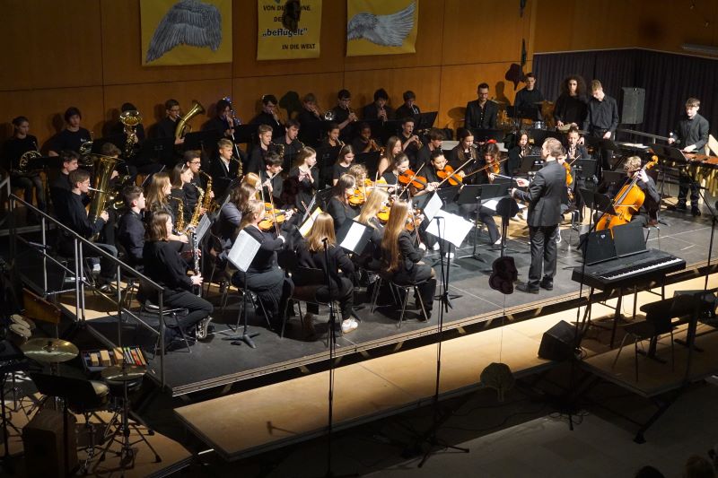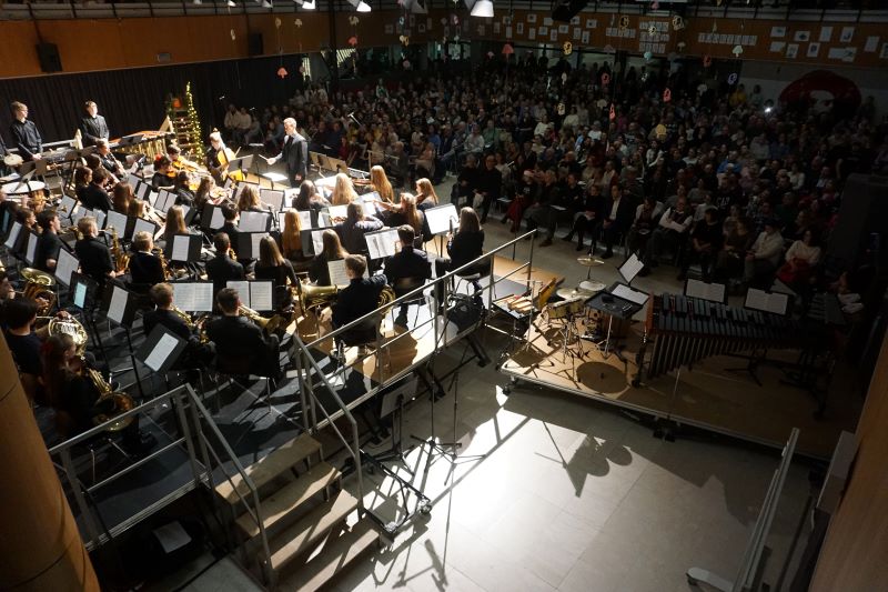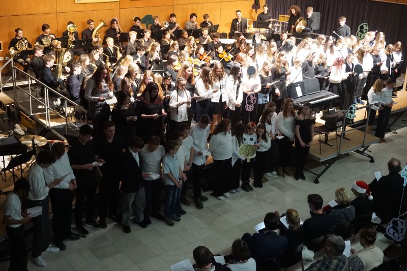 Eröffnet wurde das Konzert durch die „L’Arlesienne Suite“ von George Bizet, durch welche die Bläser und das Schlagwerk des Schulorchesters die aktuellen und ehemaligen Schülerinnen und Schüler, Eltern sowie Lehrkräfte sogleich mit besinnlichen Festklängen verzauberten. Das 48-köpfige Schulorchester, welches kompetent durch Musiklehrer Friedemann Ernst geleitet wurde, fesselte zudem mit „Home alone“ aus „Kevin – Allein zu Haus“ und „Eine Schlittenfahrt in den Alpen“ von Kees Vlak. Friedemann Ernst animierte die versammelte GGG-Gemeinschaft schließlich zum vereint gesungenen Schlusslied „O Tannenbaum".