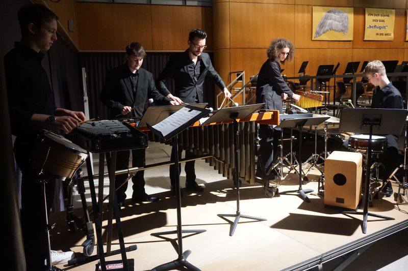 Auch das von Stephan Uthardt geleitete Percussion-Ensemble stellte sein großes Können unter Beweis: Benjamin Fried und Alexander Haldzinski (beide MSS 13), Victor Gschwind (MSS 12) sowie Valentin Steiner (MSS 11) zeigten mit einem Christmas Medley nach Walter Afanasieff ihre Vielseitigkeit.