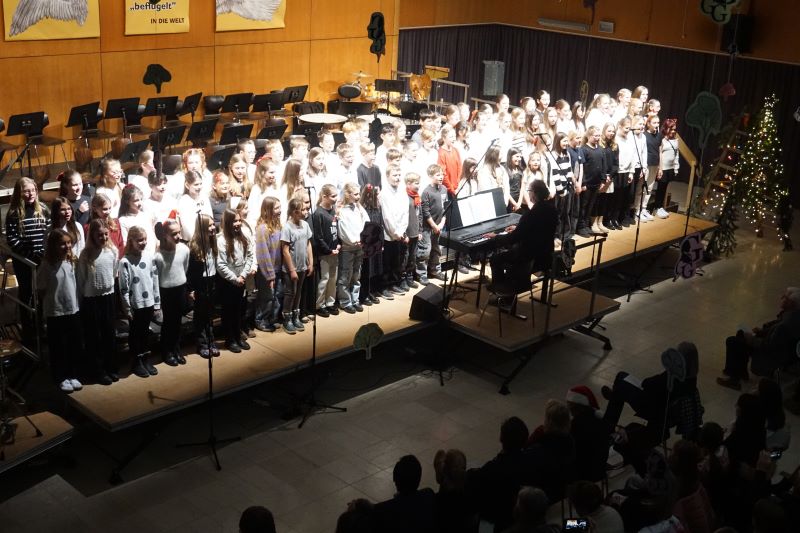 Die von Musiklehrer Stephan Uthardt geleiteten Bläser-Allstars trugen anspruchsvoll „Accidentally in love“ von den Counting Crows vor. Darüber hinaus überraschten die Schülerinnen und Schüler aus den Klassen 5 bis 7 mit „Rudolph´s Bossa“ von Johnny Marks.