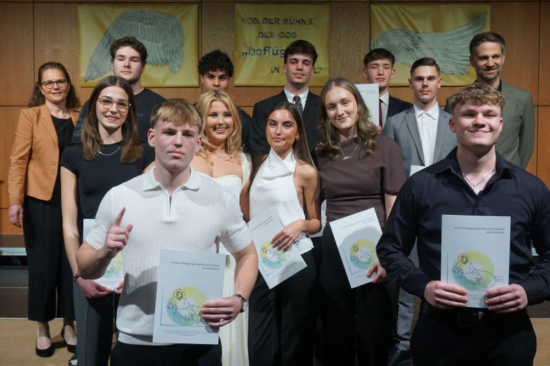 Aus Lingenfeld bekamen Maja Bertenbreiter, Mia Bomm, Kilian Deubig, Leon Dojan, Ilja Gornitch, Torben Huthmann, Marlene Palfi, Annika Przygode, Johannes Remm, Yannic Rentschler, Hanno Simon und William Webb ihr Abiturzeugnis ausgehändigt, während aus Rülzheim Mia Hoffmann, Simon Köhler, Jennifer Mühl, Tan Hoang Nguyen, Zeynep Özkara, Georgia Petkova, Lea Schanne und Hubert Strauch auf die Bühne gebeten wurden.