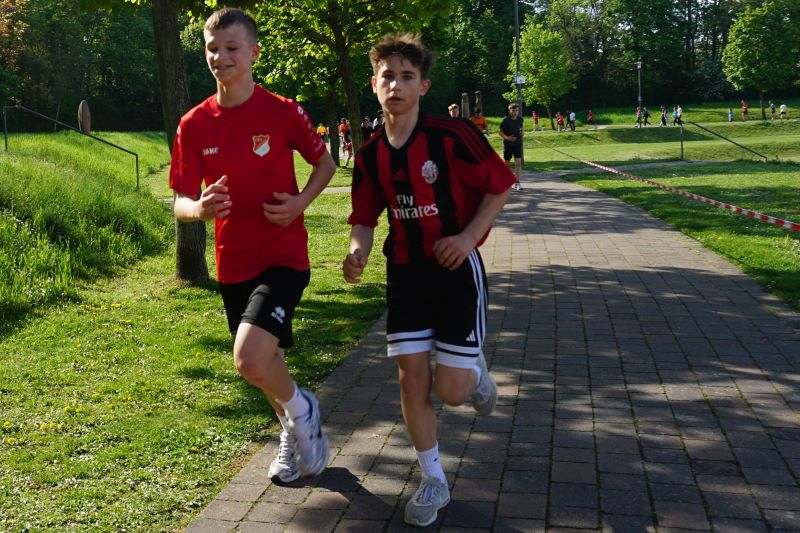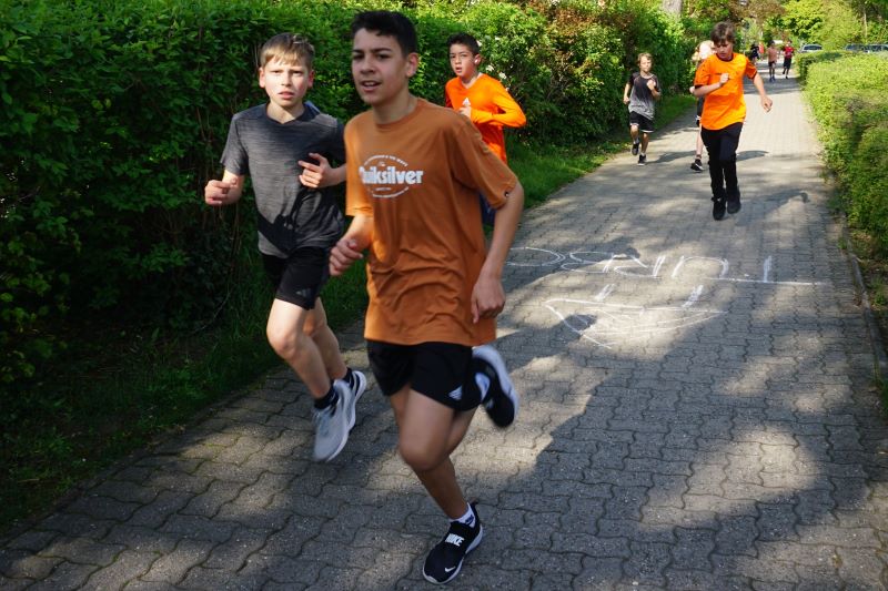 Die Lehrkräfte spornten die Laufenden für ihre nächste Runde an und zeichneten Runde für Runde die gelaufenen Kilometer auf der persönlichen Laufkarte der Schülerinnen und Schüler ab. Auf dieser konnten sich im Vorfeld Sponsorinnen und Sponsoren eintragen und entweder einen wählbaren Betrag pro gelaufenem Kilometer oder einen Pauschalbetrag festlegen.