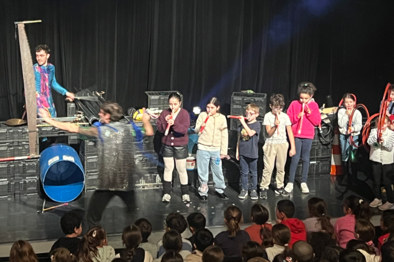 Die Französischklasse 6e des Goethe-Gymnasiums hat beim MOMIX-Festival in Mulhouse erlebt, dass Musik keine Steckdosen braucht, sondern nur Begeisterung und ein wenig kreatives Recycling. Unter Anleitung der Künstler Gaël Bouyer (alias Dr Gazouz), primär Saxophonist, und Stéphane Bordenet (alias Compost), primär Perkussionist, wurde die 6e interaktiv in eine Performance der besonderen Art eingebunden.