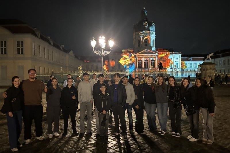 Darüber hinaus standen je nach Klasse die Siegessäule, der Alexanderplatz, das Brandenburger Tor, das Schloss Bellevue, das Holocaustmahnmal, die Topographie des Terrors, der Potsdamer Platz, der Checkpoint Charlie und vieles mehr auf dem Programm. Besonders eindrucksvoll wirkten einige dieser Gebäude kunstvoll beleuchtet während des „Festival of Lights“, das alle Klassen besuchten.