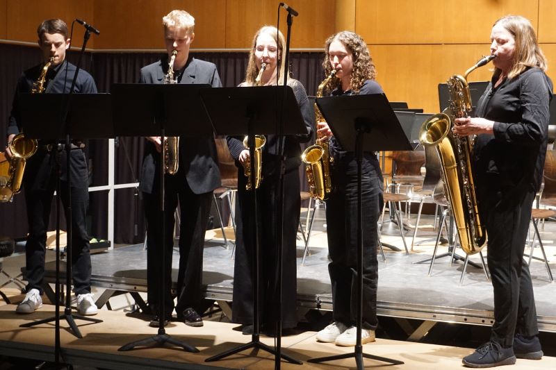 „Rudolph the red nosed reindeer“ von Johnny Marks und das traditionelle „Shenandoah“ wurden vom Saxophon-Ensemble unter der Leitung von Sabine Müller beeindruckend auf die Bühne gebracht, wofür Anne Kaufhold, Charlotte Weber, Emilia Messerschmidt und Victor Gschwind (alle MSS 12) den tosenden Applaus des Publikums ernteten.