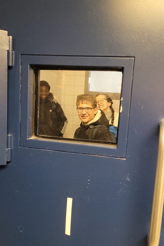Im Polizeiteil erhielten unsere Schülerinnen und Schüler eine Führung durch die Polizeidienststelle Germersheim unter Leitung der Polizeihauptkomissarin Swea Block. Hierbei wurden den Schülerinnen und Schülern der Wachbereich, der Zellentrakt, der Erkennungsdienstliche Raum und die Ausrüstung der Polizei gezeigt. Starkes Interesse hatten die Schülerinnen und Schüler an den Maßnahmen zur Identifizierung von Verdächtigen.