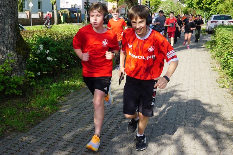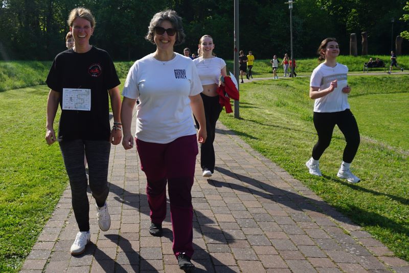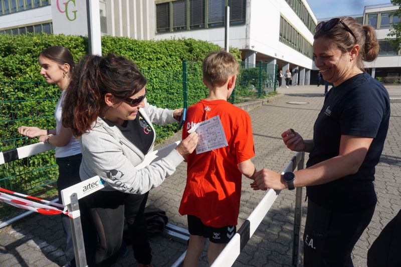 Die Lehrkräfte spornten die Laufenden für ihre nächste Runde an und zeichneten Runde für Runde die gelaufenen Kilometer auf der persönlichen Laufkarte der Schülerinnen und Schüler ab. Auf dieser konnten sich im Vorfeld Sponsorinnen und Sponsoren eintragen und entweder einen wählbaren Betrag pro gelaufenem Kilometer oder einen Pauschalbetrag festlegen.