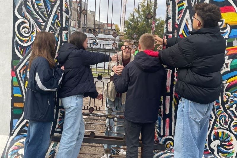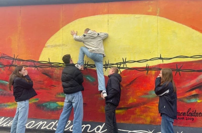 Die 10a setzte sich in einer kreativen Fotochallenge an der East Side Gallery mit den Themen Flucht, Freiheit und Menschlichkeit auseinander.
