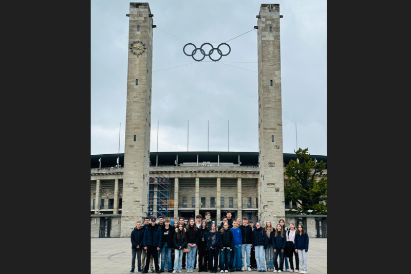 Die Schülerinnen und Schüler der 10a besuchten das Olympiastadion und erfuhren in einer spannenden Führung einiges über dessen Bau für die Olympischen Spiele 1936 und die heutige Nutzung.