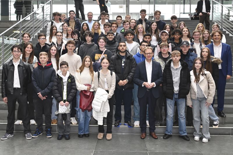 „Ooooolaf!“, schallt es aus aller Munde! 65 Schülerinnen und Schülern blicken gebannt in Richtung der schwarzen Limousine, in die gerade ein Mann mit charakteristischer Frisur und seiner allseits bekannten Aktentasche einsteigen möchte. Letztere lässt er im Auto, doch er selbst steigt nochmals aus! Schnell nähert er sich den Klassen 10a, 10b und 10d, grinsend, so wie man ihn kennt. Er weiß, was alles wollen: ein Foto mit dem ehemaligen Bundeskanzler! Geistesgegenwärtig drückt jemand auf den Auslöser. Olaf Scholz blickt lächelnd in die Runde und schon ist der Moment vor dem zum Bundestag gehörenden Paul-Löbe-Haus vorbei. Er steigt ins Auto und schon ist er weg! Ist das wirklich passiert?